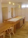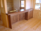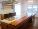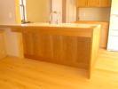 カウンターで子供が宿題をしたり、