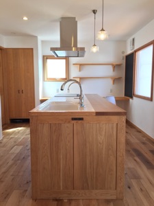 梁|オーダーキッチン|天板・タイル|岐阜市にてオリジナルキッチンを製作